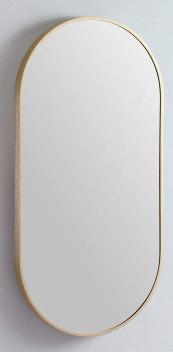 A perfect oval pill shaped wall mirror to complete a classic and elegant ensemble for your bathroom. The luxurious brush brass coloured aluminium frame is full of elegance and will definitely make your bathroom shine. The centre mirror is copper free which makes this mirror your perfect choice for the bathroom.