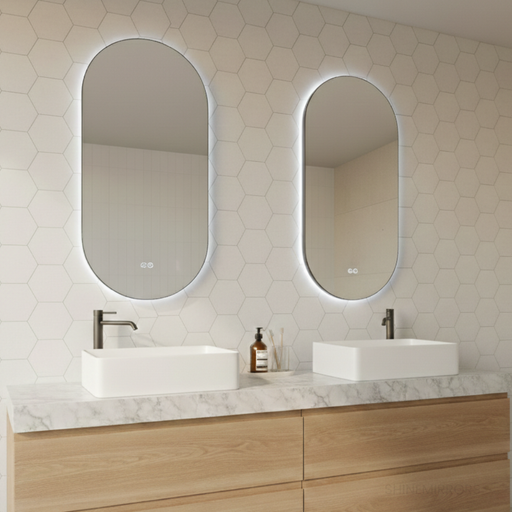 View full detailsThe Amara Pill-Shaped Oval Framed Backlit LED Mirror combines modern elegance with everyday practicality. The two sizes offer the perfect fit for a...