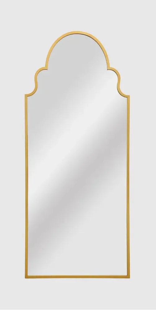 View full detailsAdd a touch of elegance to your space with the Nickly Gold Arched Floor Standing Mirror. Crafted from sturdy metal with a luxurious gold finish, th...