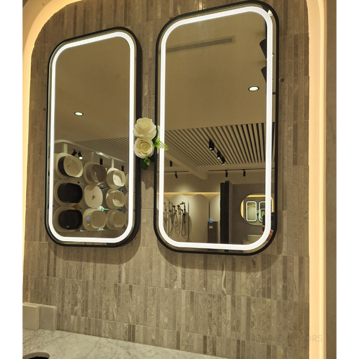 View full detailsExperience the ultimate lighting solution with our Ace Curved Corners Matt Black Backlit LED Mirror. Featuring LED natural light with a colour temp...