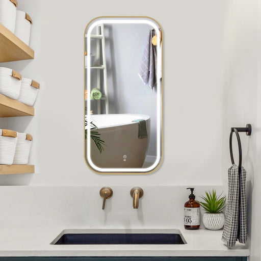 View full detailsElevate your bathroom's aesthetic with the Abby Arched Gold Framed Backlit LED Bathroom Mirror. The sleek gold frame adds sophistication and the ba...