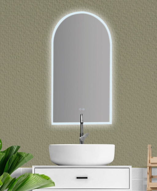 View full detailsEnhance your bathroom with this exquisite arched LED frontlit mirror. Featuring a copper free center mirror and an integrated demister, this produc...