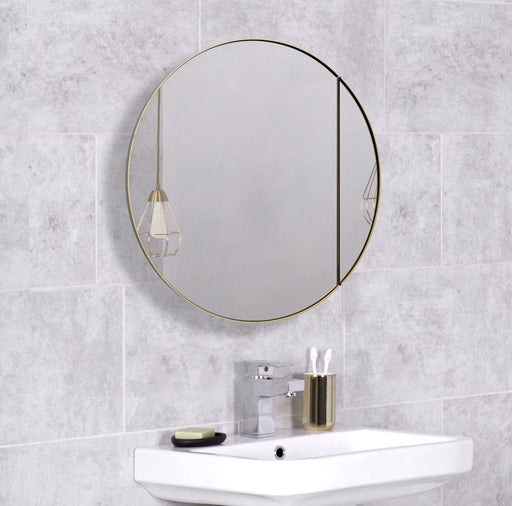 This mirrored cabinet boasts a sleek and elegant design, with its round mirror door with a stylish satin brass frame. It features a single mirrored...