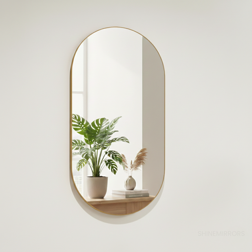 View full detailsA perfect oval pill shaped wall mirror to complete a classic and elegant ensemble for your bathroom. The luxurious brush brass coloured aluminium f...