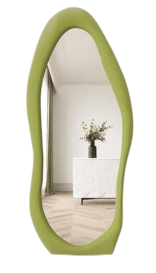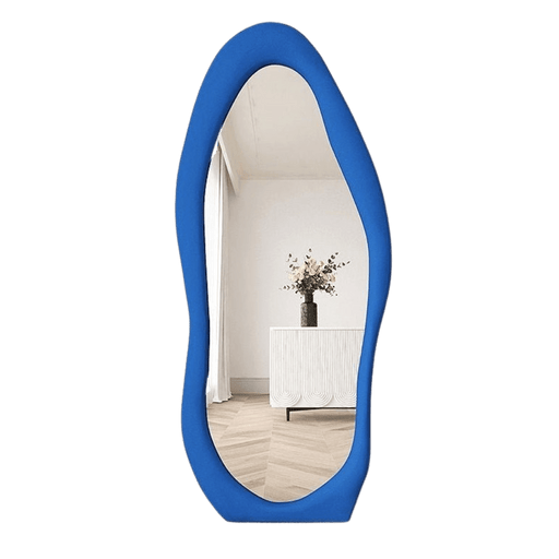 View full detailsAdd elegance and style to any room with the Alivia Blue Full Size Wavy Wall Mirror. Its asymmetrical design features a wooden frame with sponge-fil...