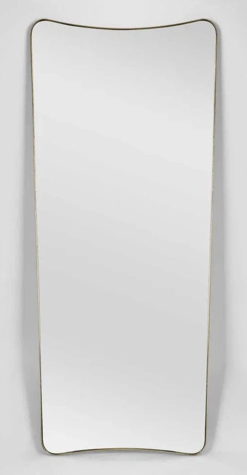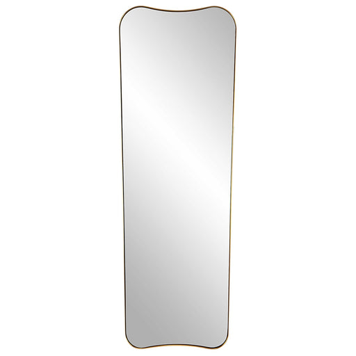 View full detailsThis tall full length mirror showcases a gracefully curved iron frame with a richly antiqued gold finish. It can be mounted either vertically or ho...