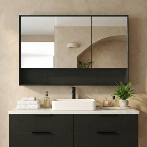 Florencia Black Oak Mirrored Bathroom Shaving Cabinet 3-door