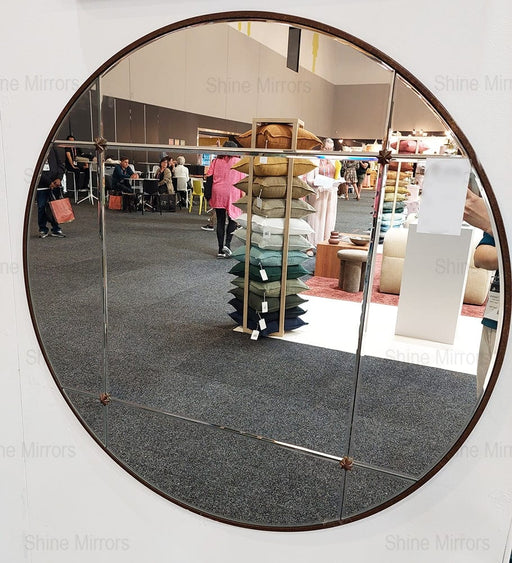 Industrial style round wall mirror with a beveled centre mirror. Its outer overlapping frame creates a 2-dimensional design, which gives this wall ...