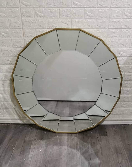 A mirrored side panel wall mirror having a thin gold coloured frame on the edges. The centre mirror is round, making this mirror suitable to displa...