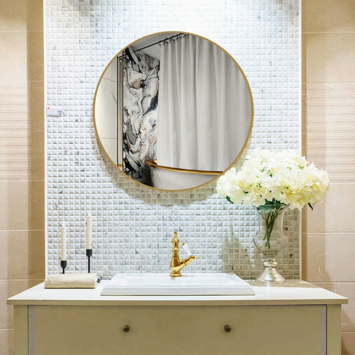 View full detailsThe Strauss Gold Round Gold Mirror will add an exquisite touch of modern luxury to the home. Crafted with a timeless gold iron frame, this mirror's...