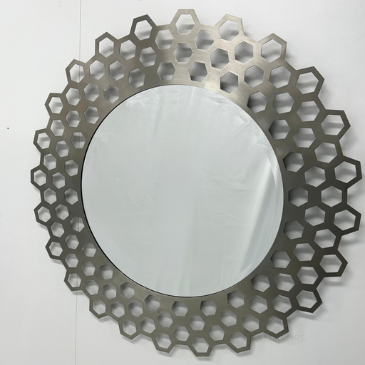 View full detailsThe Elvina Round Brushed Silver Wall Mirror features a robust stainless steel frame in honeycomb style with a refined brushed silver finish, combin...