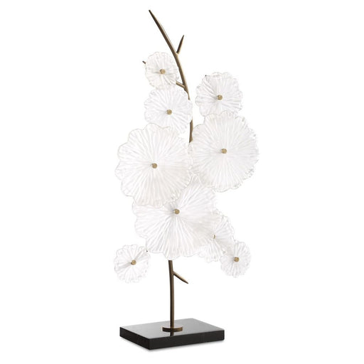 View full detailsElevate your interior decor with the Uttermost Glass Garden Sculpture. Crafted with delicate glass blossoms, golden stems, and sleek black marble b...