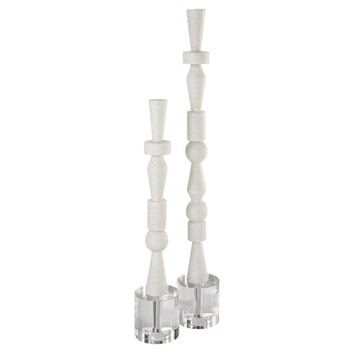 View full detailsExperience elegance and charm with the Uttermost Wessex White Candleholders Set of 2. Made of white faux shagreen, these candleholders boast an ant...