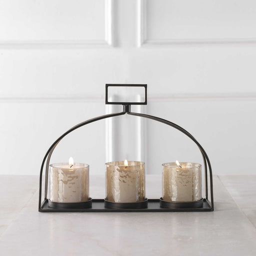 View full detailsCreate a warm and exotic atmosphere with the Uttermost Riad Triple Candleholder. This Moroccan-style candleholder is finished in dark bronze with g...