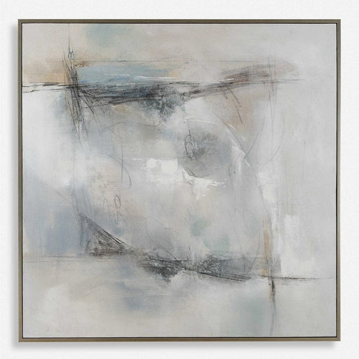 View full detailsThe Uttermost Gravity Hand Painted Canvas presents an abstract horizon rendered in soft pastel blues, taupe, and ivory. Its fluid, layered brushstr...