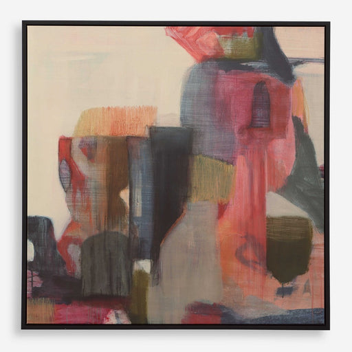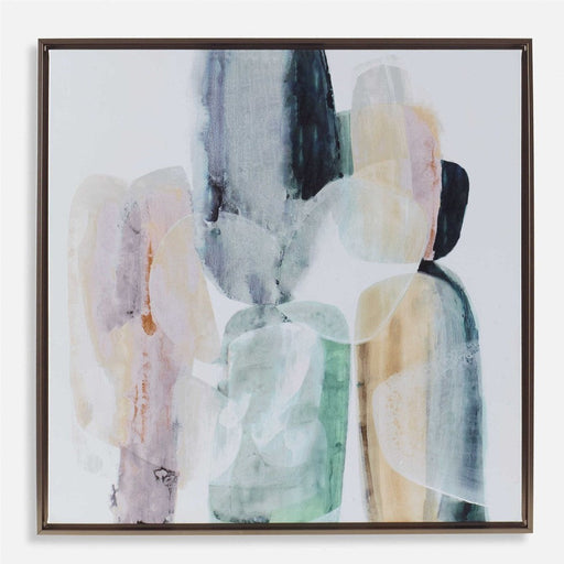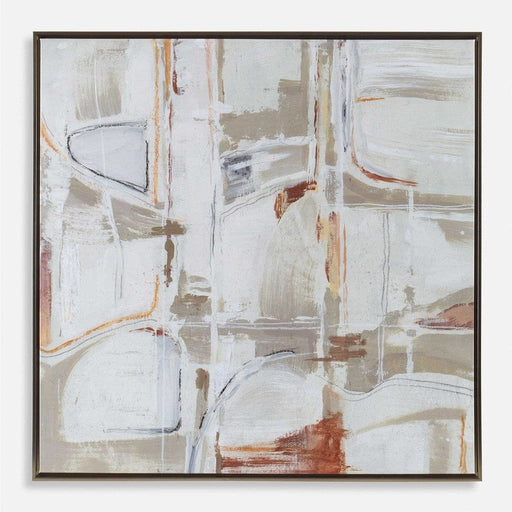 View full detailsUttermost Process Framed Canvas showcases a refined interplay of muted creams, grays, blush pink, olive green, and plum, creating a subtle yet evoc...