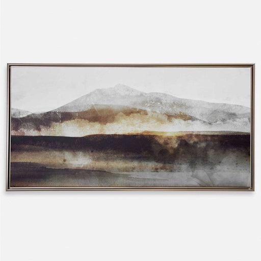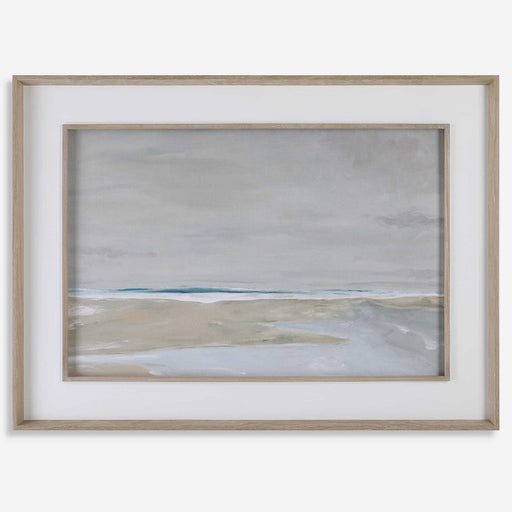 View full detailsUttermost Hazy Lake Framed Canvas features a serene landscape with a low horizon that emphasizes a vast, creamy sky blending whites and grays. Subt...