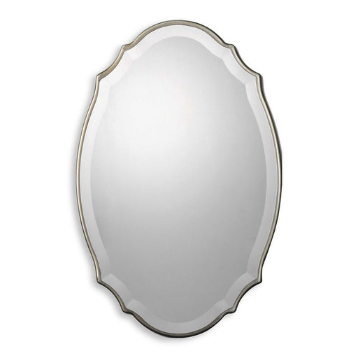 The Uttermost Sherise Oval Wall Mirror emanates beauty, elegance, and class all at the same time. Silver beads line up its nickel-finished frame, w...