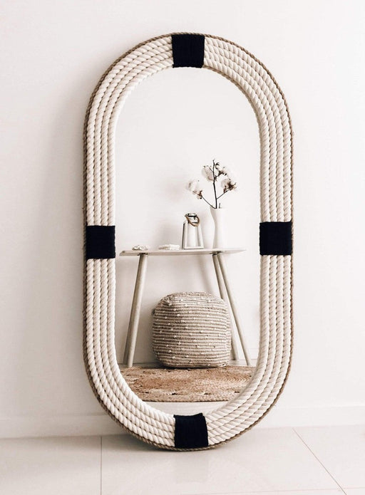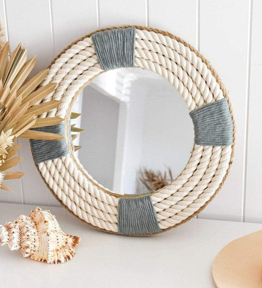 Adriel Navy Wall Mirror is a gorgeous handmade mirror made up of nice off white cotton rope with navy trim accent. Every detail is a clear vision o...