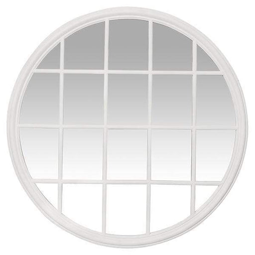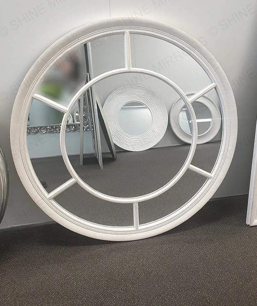 A beautiful window pane style matt white coloured round wall mirror. It is perfect for French country themes and can easily blend with any furnitur...