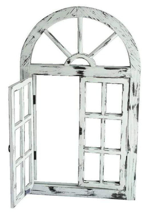 This arched wall mirror features a beautiful distressed white brown frame colour finish. Featuring a window style that can make look your garden wa...