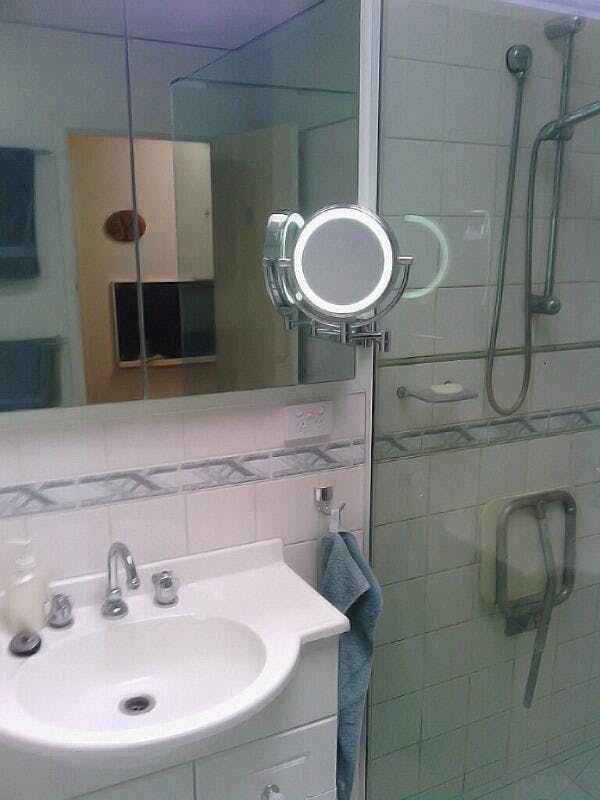 Arm extends to 320mm for longer reach. 3 watt white LED lighting for clear illumination. All mirrors have a 12 volt transformer incorporated in them and a wire to connect directly to the 240V supply or plug into a power point.