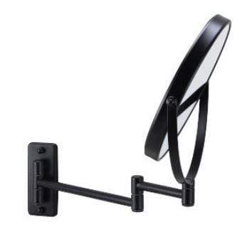 A modern style black colour finish shaving mirror with 5x magnification. Mirror can be turned so as to also use the 5x magnification. With a double-sided mirror, you can choose between a normal reflection and 5x magnification, and the mirror can be flipped 360° so you can adjust the angle for the best view.