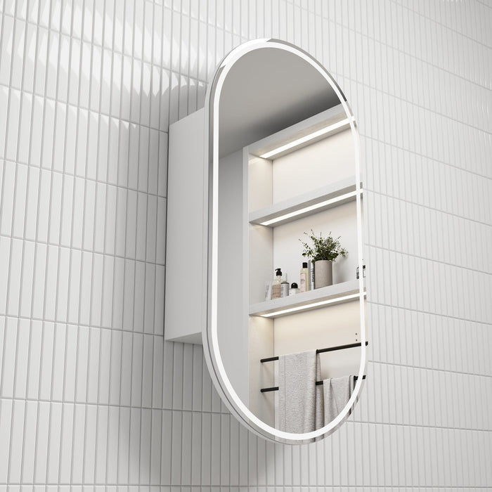 Barry Oval Frontlit LED Shaving Cabinet With Option For Coloured Frame