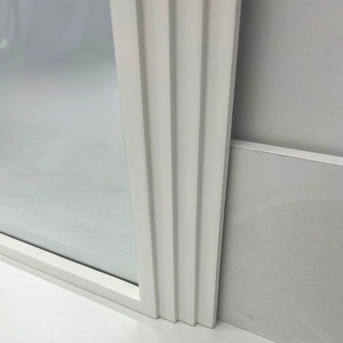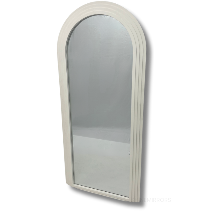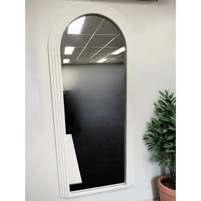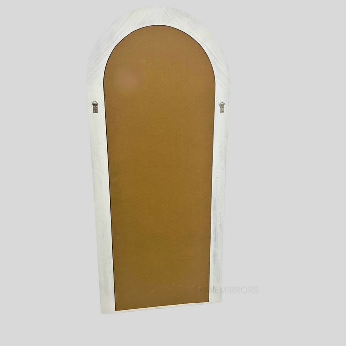 Unleash your boldness with the Bellona Arched White Full Length Mirror. Made with a sturdy white solid wood frame, this mirror exudes strength and confidence. Add a touch of adventure to your daily routine with this versatile and elegant mirror.