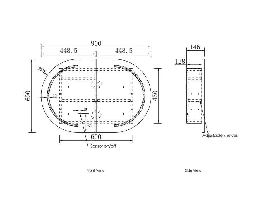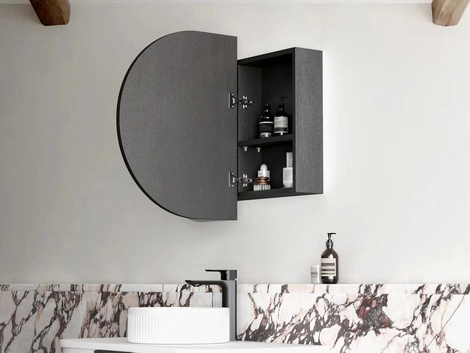 The Bryson Black Oak LED Frontlit Mirrored Bathroom Shaving Cabinet is designed to combine style and convenience. Its two doors feature LED light strips that make tasks like grooming and shaving easier. The black oak finish adds a stylish touch to any bathroom décor. The cabinet can be recessed to the wall, and has internal adjustable shelf.