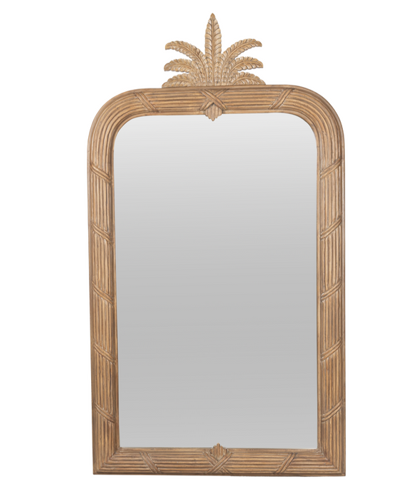Unleash your inner sophistication with the Chantal Arched Mud Grey Brown Wall Mirror. Featuring a majestic crown top and a captivating black frame, this full-length mirror will take your living space to new heights of luxury. Bring timeless charm into your home and let the enchanting gold leaf add its own touch of allure.