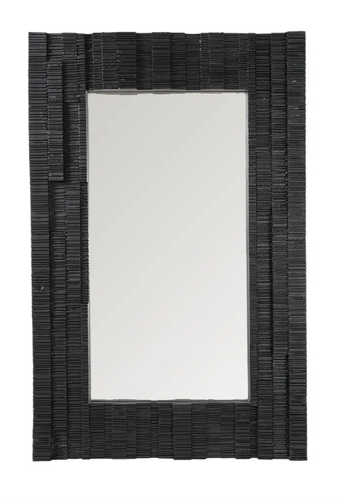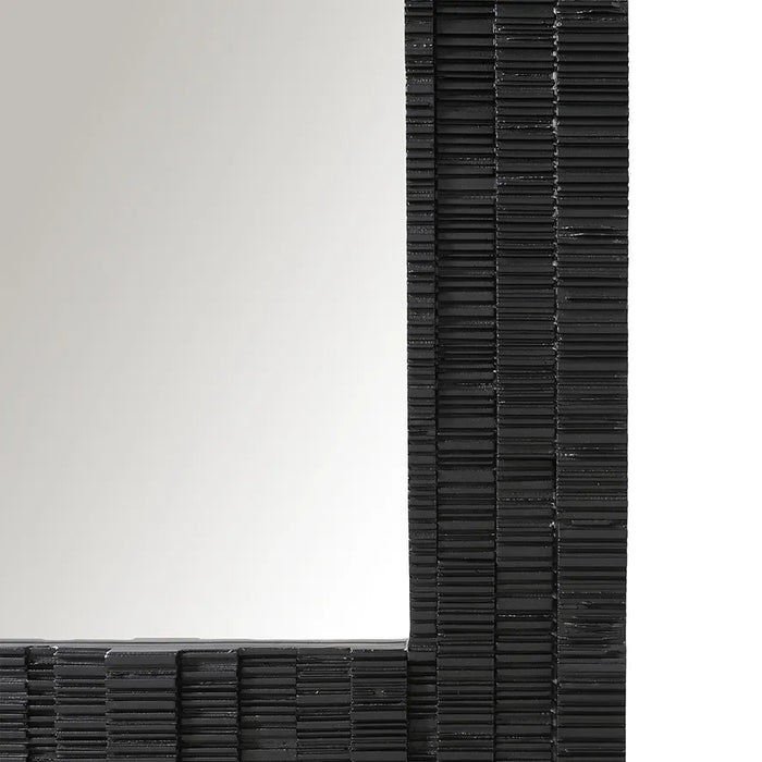 Elevate your space with the Dani Black Rectangle Wall Mirror, featuring a sleek matte black frame. This mirror combines modern elegance with subtle detailing, making it a refined addition to any room. Its clean lines and sophisticated finish enhance your décor while providing a clear, crisp reflection. Perfect for adding depth and style to your walls with understated luxury.