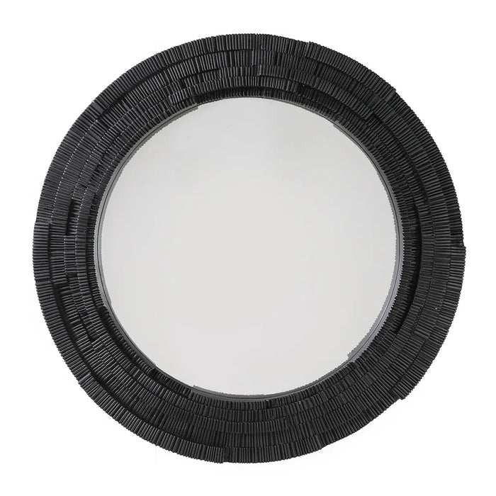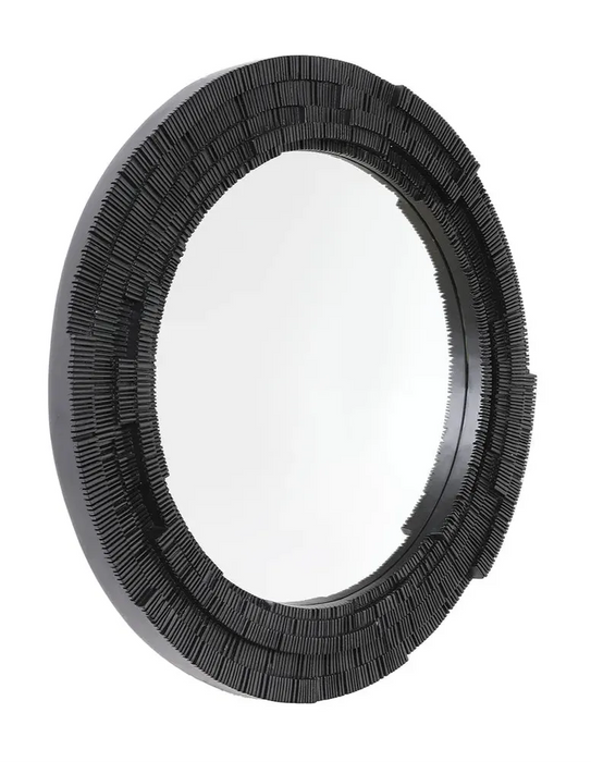 Elevate your space with the Dani Black Round Wall Mirror, featuring a bold handcrafted iron frame finished in matte black. Its striking design commands attention, adding a daring edge to any room while reflecting your unique style with confidence.