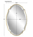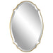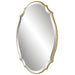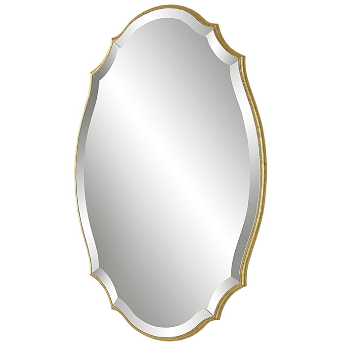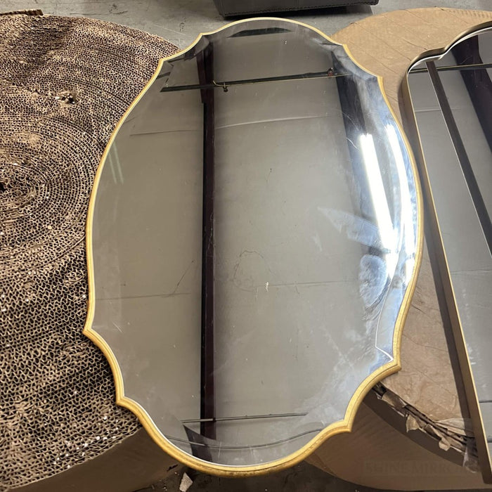 Gorgeous oval shaped wall mirror with frame finished in a lightly antiqued, metallic gold leaf. Centre mirror has a 2.5cm bevel to add charm. Use it in the bathroom, bedroom, or above any console table, and see your space transform. Can be hung either vertically or horizontally.