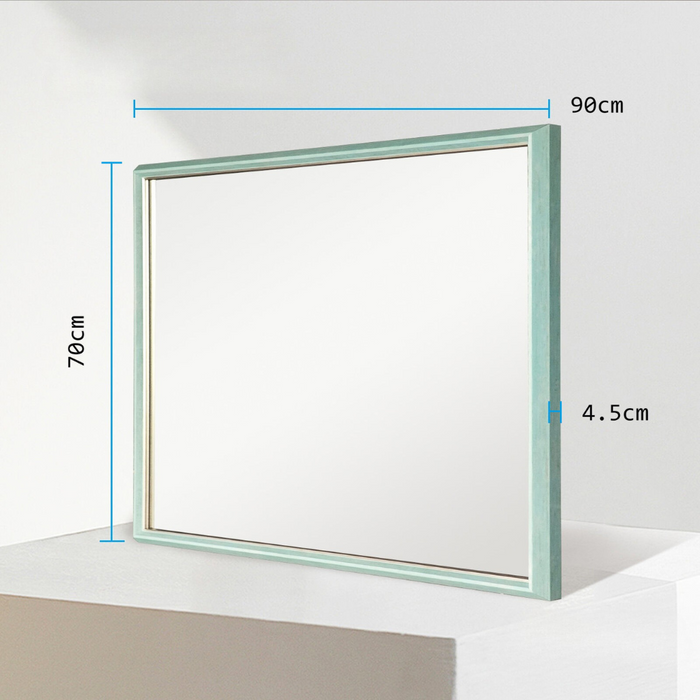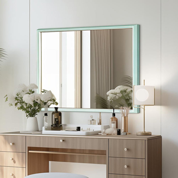 Upgrade your interior design with the sophisticated and spacious Eliza Turquoise Wall Mirror. Its vintage-style PS polymer frame and full-frame design add a touch of elegance to any room. This mirror is water and rust-resistant, making it perfect for any space. Includes wall anchors and screws for easy mounting. Elevate your space with this durable and versatile addition.