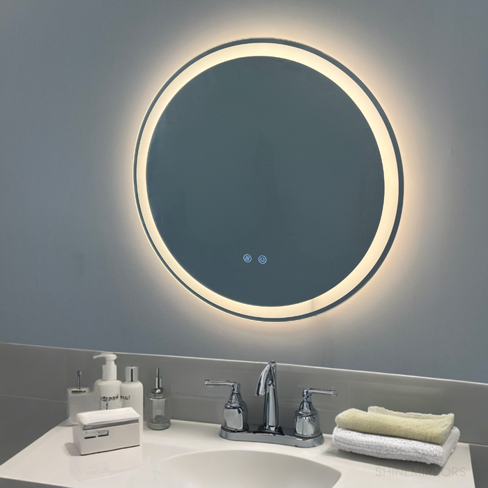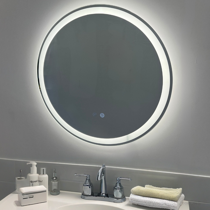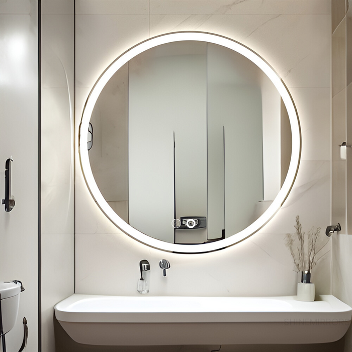 Enhance your bathroom with the modern and sleek Gino Round Frontlit LED Bathroom Mirror. The frosted finish adds a touch of elegance and enables the LED light to radiate a soft glow, perfect for creating a calming and relaxing environment. Upgrade your bathroom experience today.