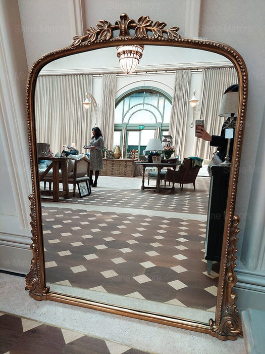 The Grace Arched Wall Mirror will surely bring a brilliant accent to your traditional home interior design. This full length wall mirror has an ornate, intricate overlay on its frame depicting old Italian mirror designs.