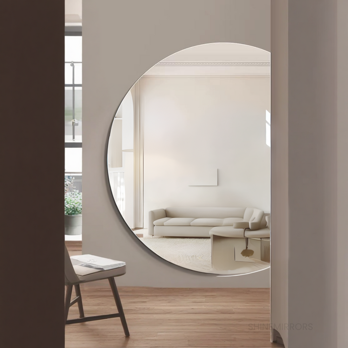 This frameless half round moon mirror is the perfect addition to any bathroom. Its unique half-moon design adds a touch of elegance and functionality. Made with precision and expertise, this mirror is sure to elevate your bathroom experience.