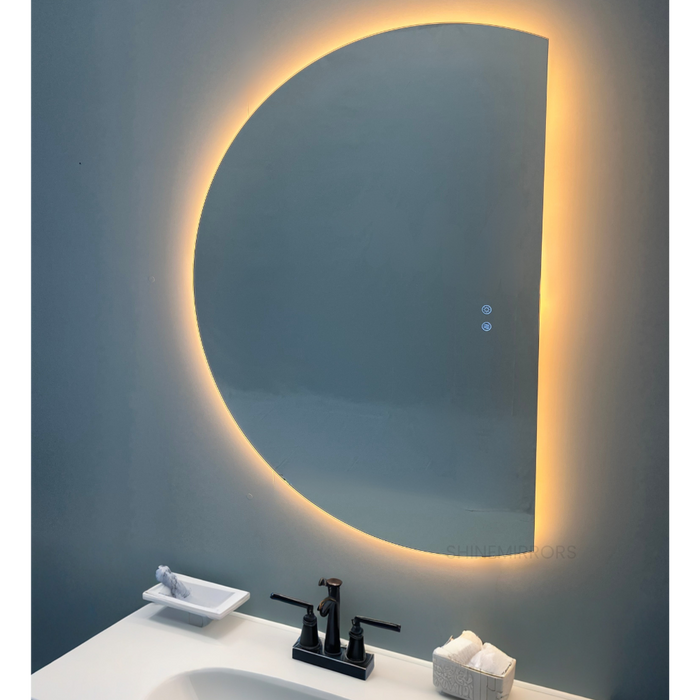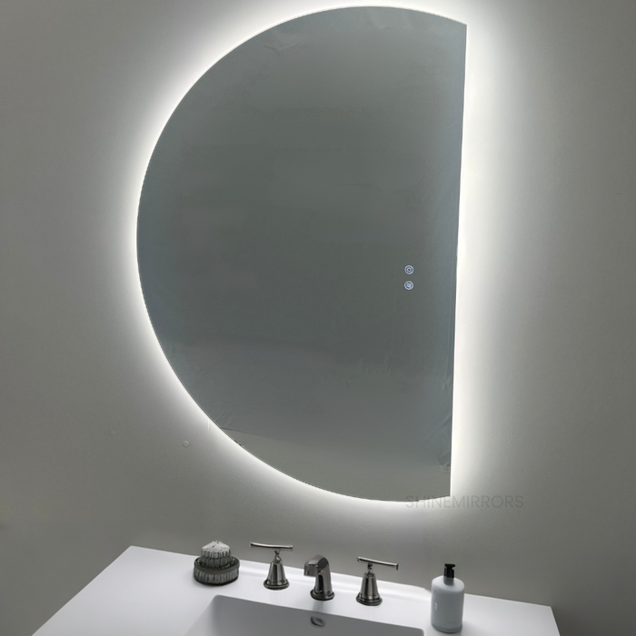 Hillary Frameless Half Round Moon Right Cut Backlit LED Bathroom Mirror