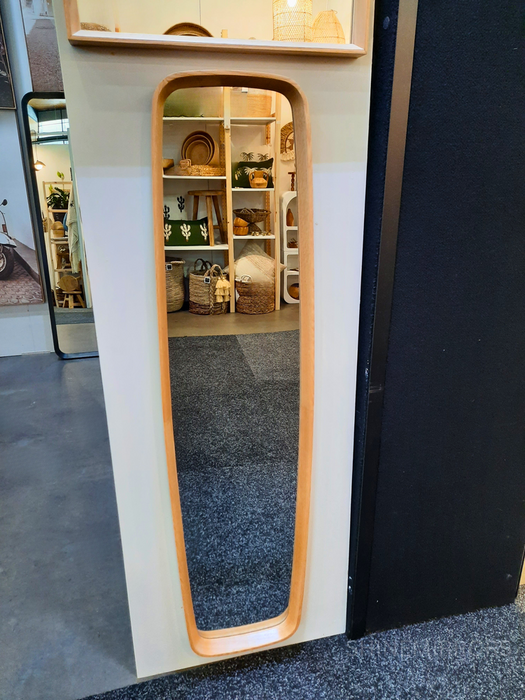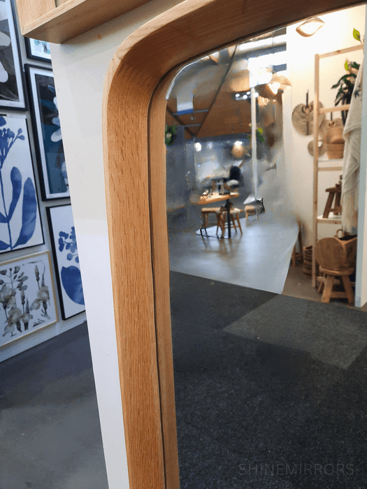 This wall mirror is crafted from American Oak, offering a solid and reliable frame that is 4.5 cm deep and angled for added depth and elegance. The corners are made curved to have an appealing look. Its length of 145cm but with of 35cm makes it a great choice for narrow spaces.