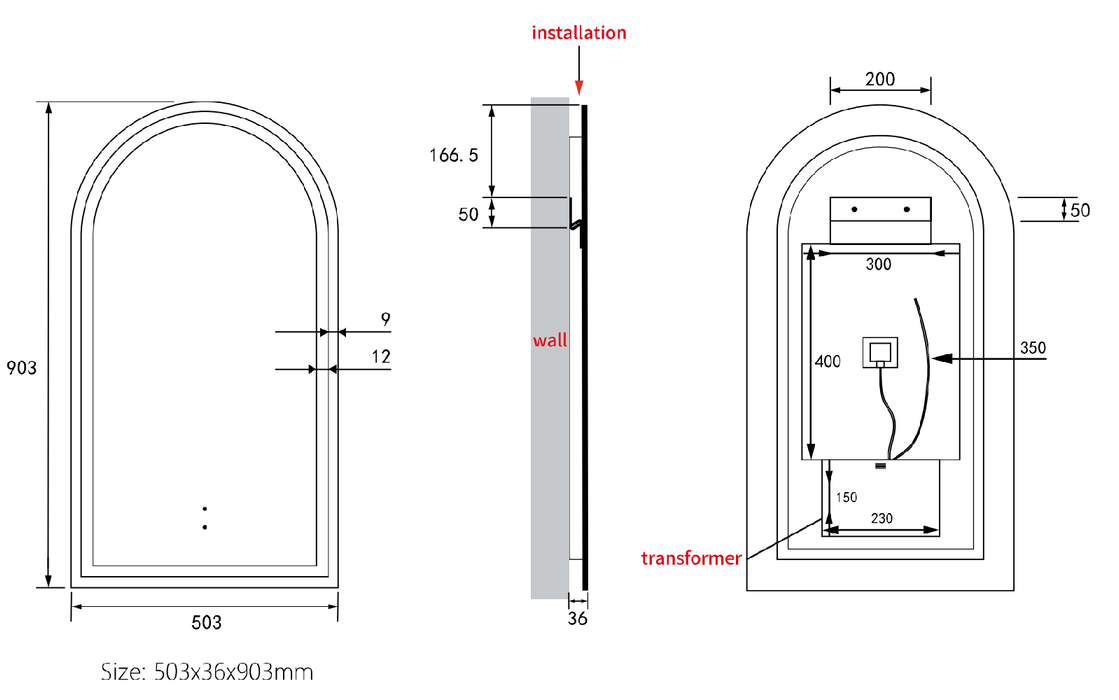 - See other variants of Kayden Arched Frontlit LED Bathroom Mirror