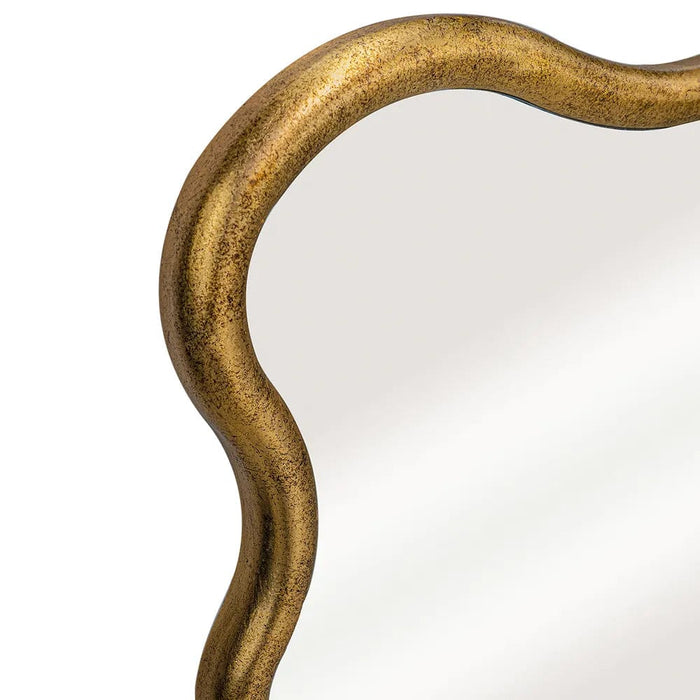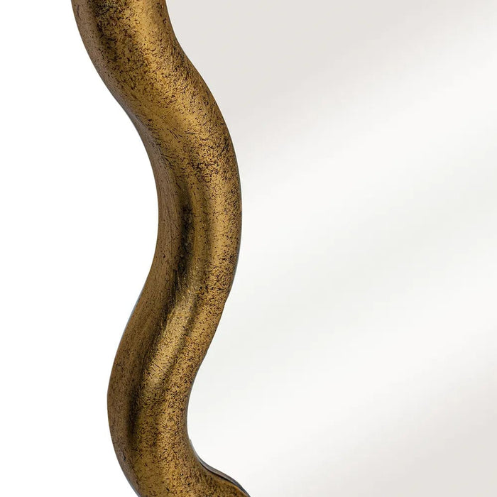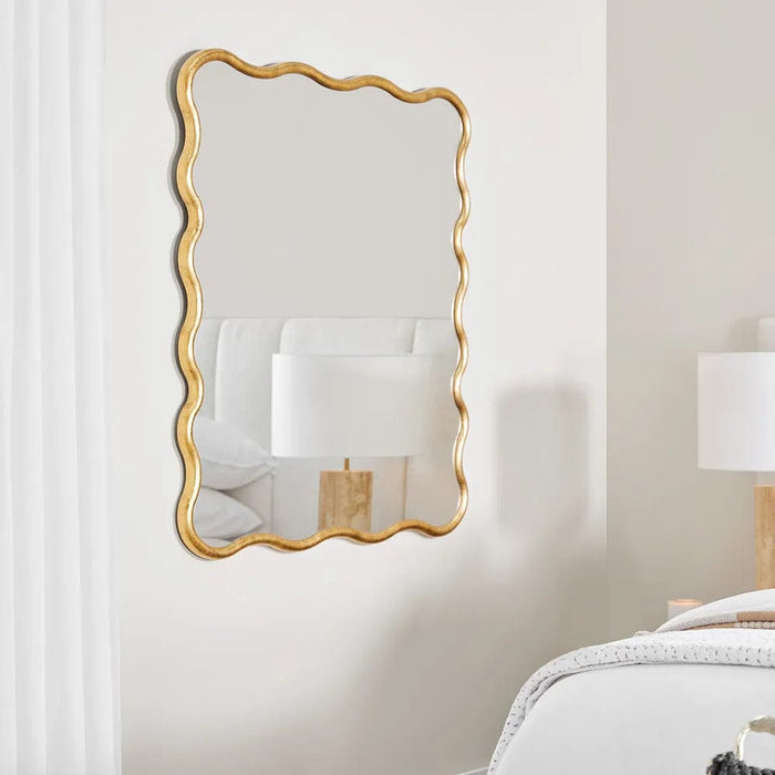 The Kyle Square Wall Mirror offers an attractive and modern aesthetic with its wave design frame and hand-rubbed antique gold finish. Perfect for adding a touch of classic, decorative charm to any wall, this mirror will provide both form and function.