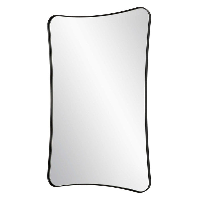 Elevate your daily beauty routine with the Loudon Vanity Mirror. Made with a sleek satin black finish and a curved metal frame, this mirror adds a touch of femininity to any space. Its floating polished edge mirror provides a crisp reflection, making it a must-have for your modern industrial decor.