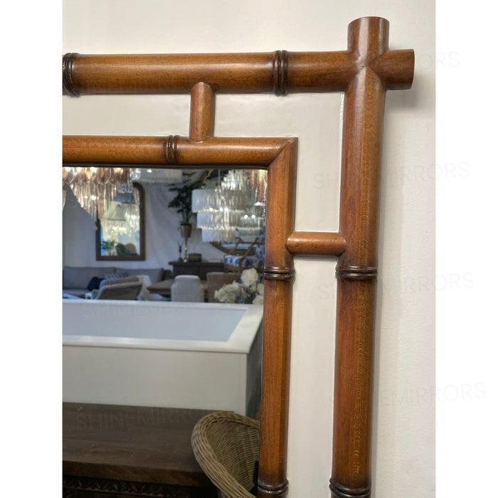 Upgrade your home with the Malinda Ivory Large Wall Mirror. Crafted from Oakwood, it boasts a durable bamboo-style frame and striking inner ivory white border. Perfect for an oriental themed space.