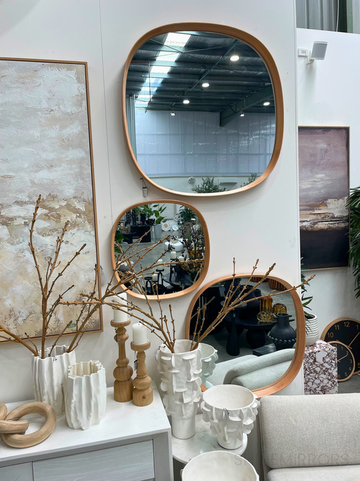 Explore the bold design of the Marianne Square Round Mirror, crafted with premium wood and high-quality mirror for a daringly modern look. Add a touch of adventure to any room with this stunning piece.