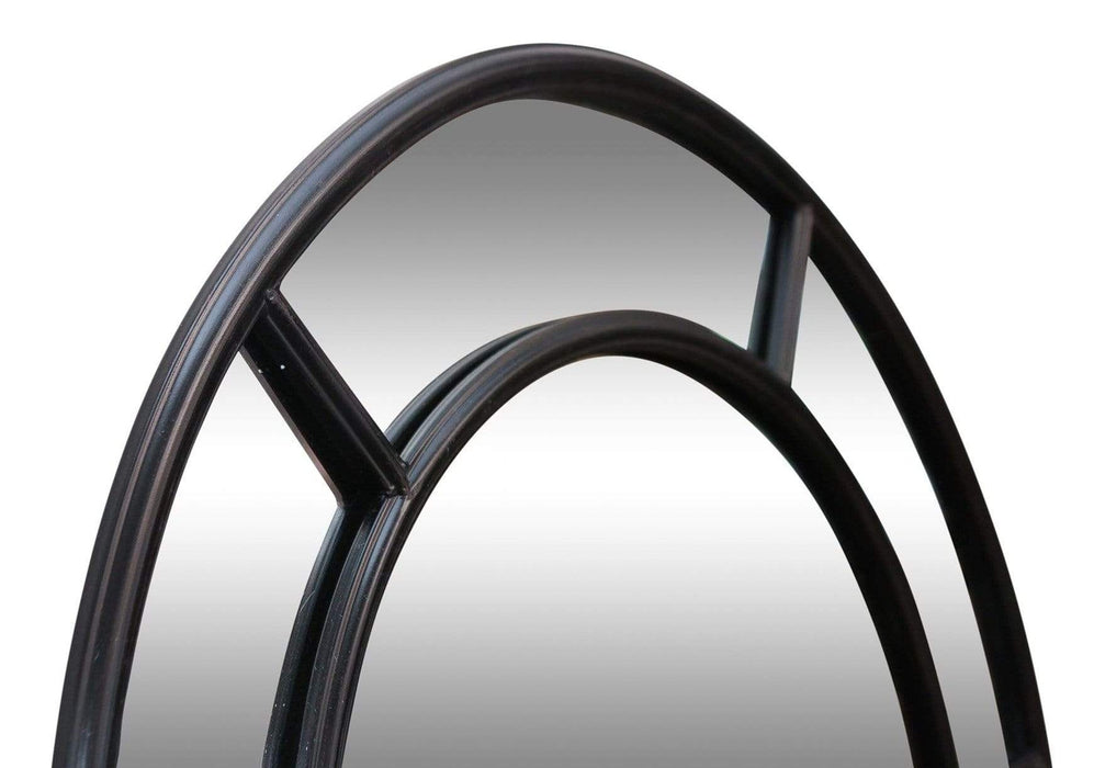 Arched black colour wall mirror will always be classic. With its multi-panel window style in an iron metal material frame, it's definitely a stunner. Its tall height maximises the reflective power of this mirror, thus making your space look bigger.