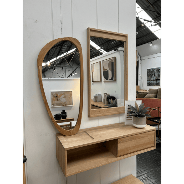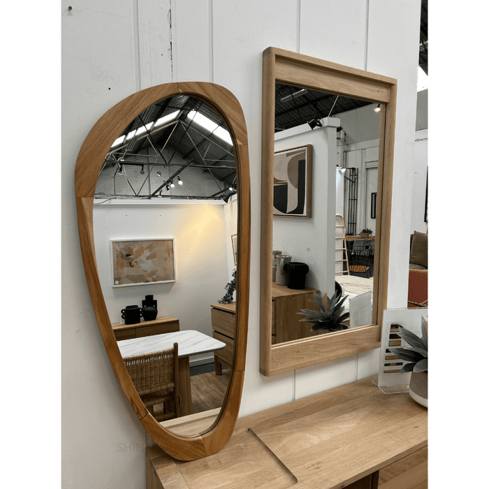 The Medina Pebble Shaped Wall Mirror is versatile and complements a variety of interior styles, including modern, Scandinavian, and rustic designs. It is especially suited for coastal boho themed spaces due to its organic design elements. You can also pair it with the larger Medina mirror for a stunning display on larger walls. Please note that mounting screws and plugs are not included, allowing for customisable installation depending on your specific wall needs.