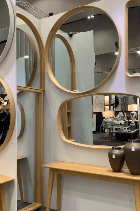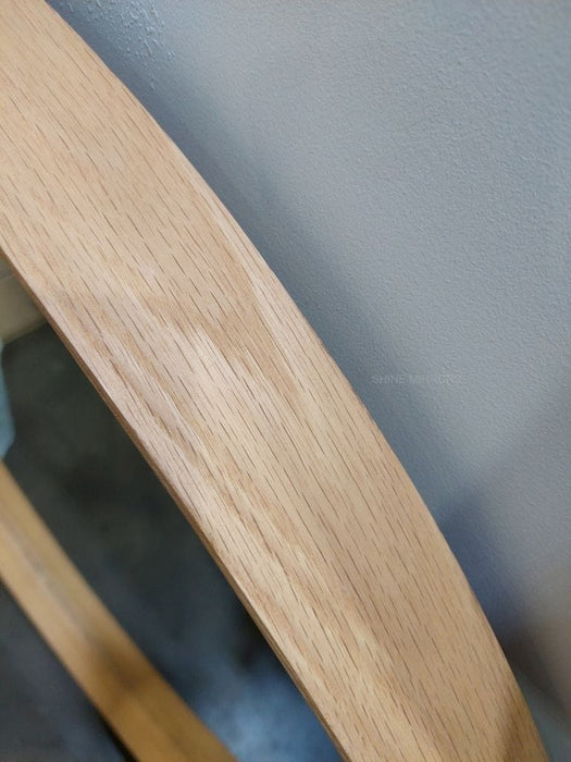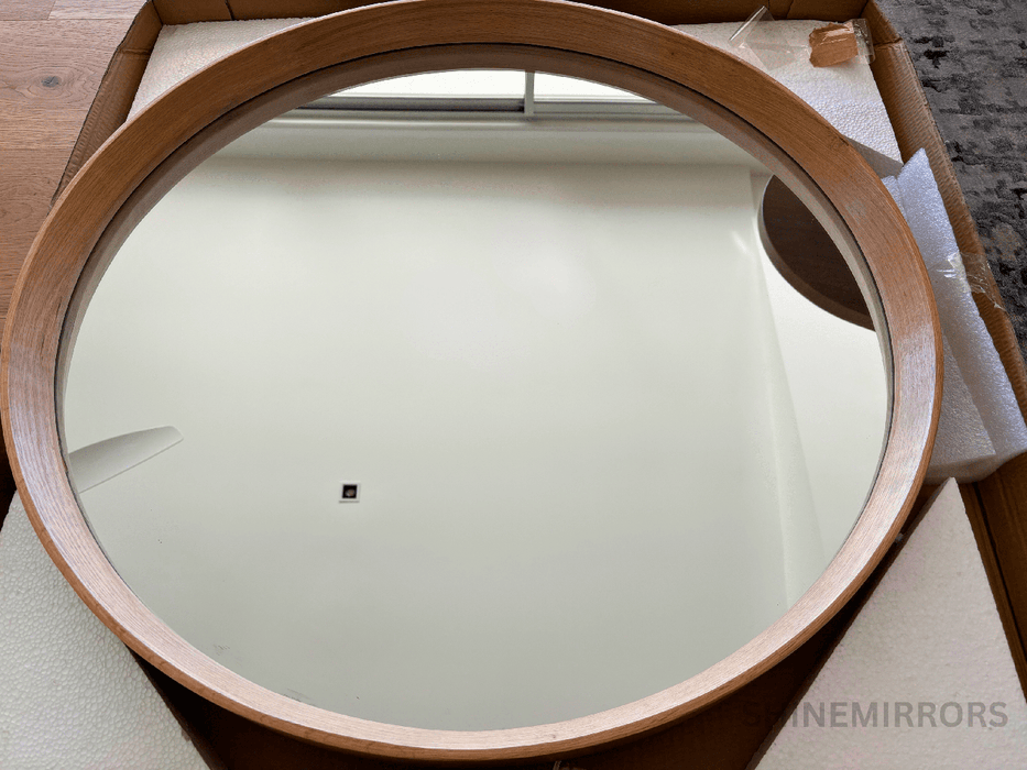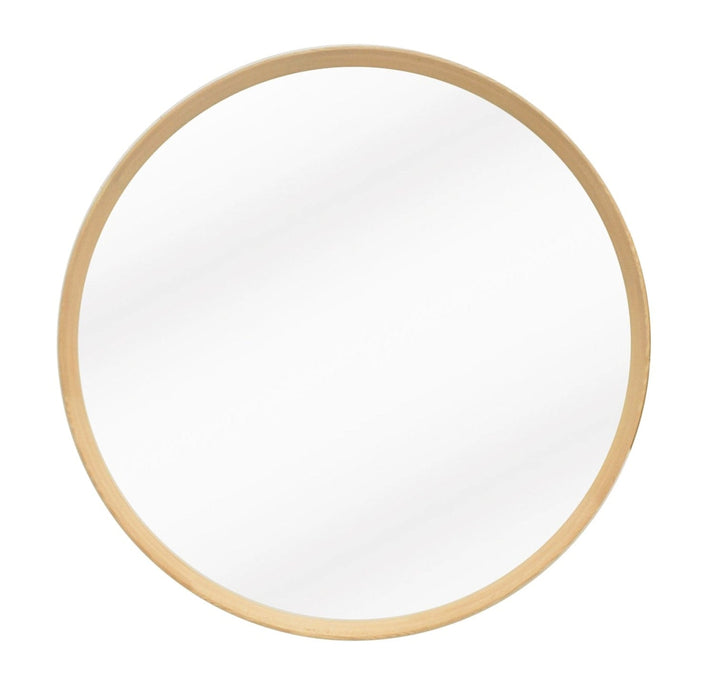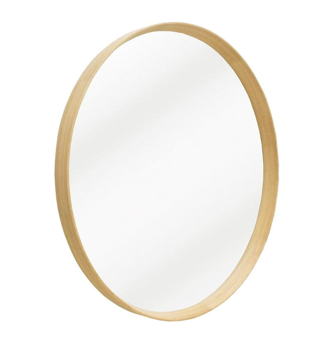 This Merindah Round Oak Wall Mirror is crafted from natural oak timber providing a contemporary style and durability. Its flat mirror provides a multifaceted and clear view, perfect for creating a modern and tasteful addition to any space. The frame has a deep depth, and is also angled for a unique look.