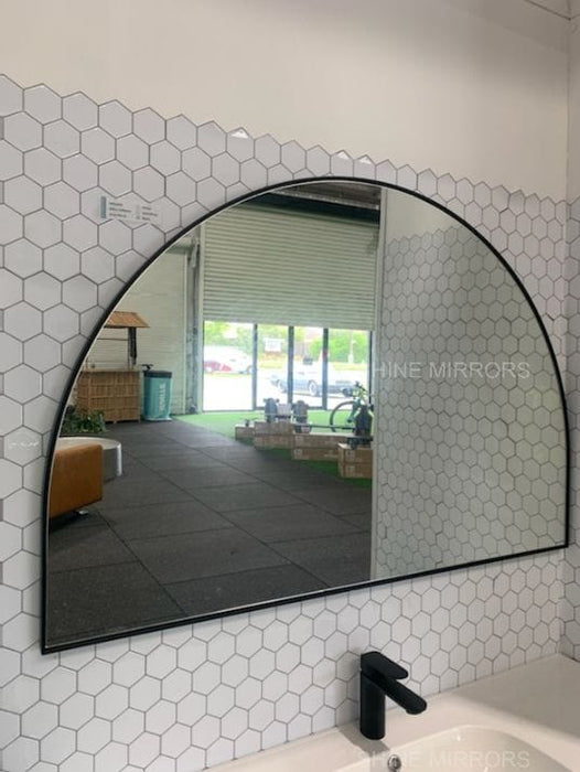 This arched mirror features a beautiful semi-circle shape with an elegant black finish. Uses stainless steel frame for a strong built. This piece is perfect for the bathroom and vanity area. Its 120cm length would maximise your vanity wall space for reflection.