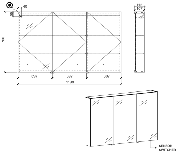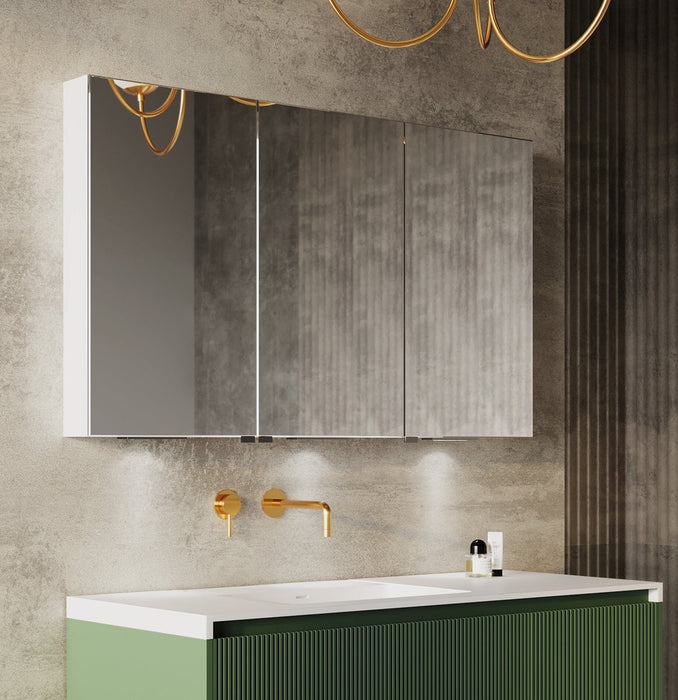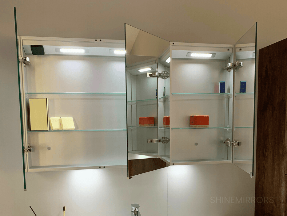 A minimalistic style yet elegant LED mirror cabinet. This 3-door mirrored cabinet offers a slim line doors with smooth edges with perfection. The adjustable shelves will give your toiletries enough storage space. The lighting can be controlled using a motion sensor switch.